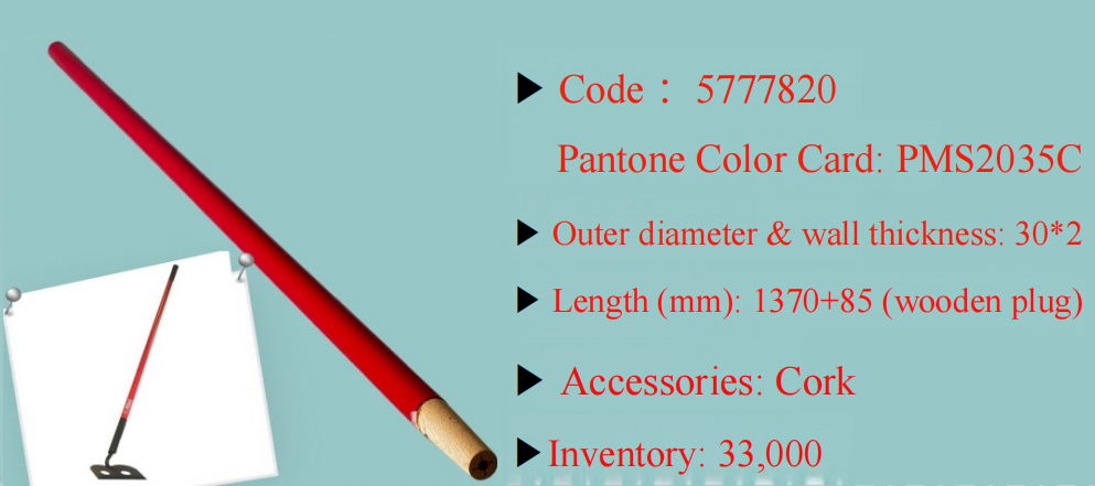 Esta autorización incluye 6 tipos de manijas con diferentes especificaciones, incluidas opciones de color amarillo, rojo, negro y otras. El diámetro exterior varía de 30 mm a 32 mm y la longitud abarca de 458 mm a 1450 mm (incluidos los accesorios). Algunos modelos están equipados con varillas de fibra integradas, tubos de hierro integrados, tapones de madera, fundas antideslizantes y otros accesorios. El inventario total actual supera las 56.000 unidades, entre las que el stock del modelo PMS2035C rojo alcanza las 33.000 unidades.